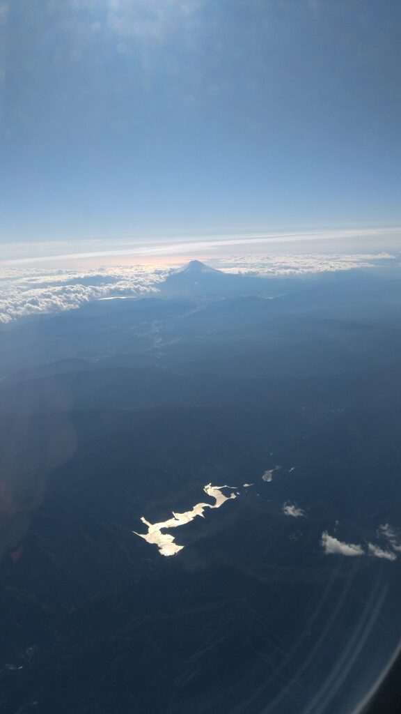 往きの飛行機の中で富士山が見えたので写真を撮ったところ素晴らしいものだったので
